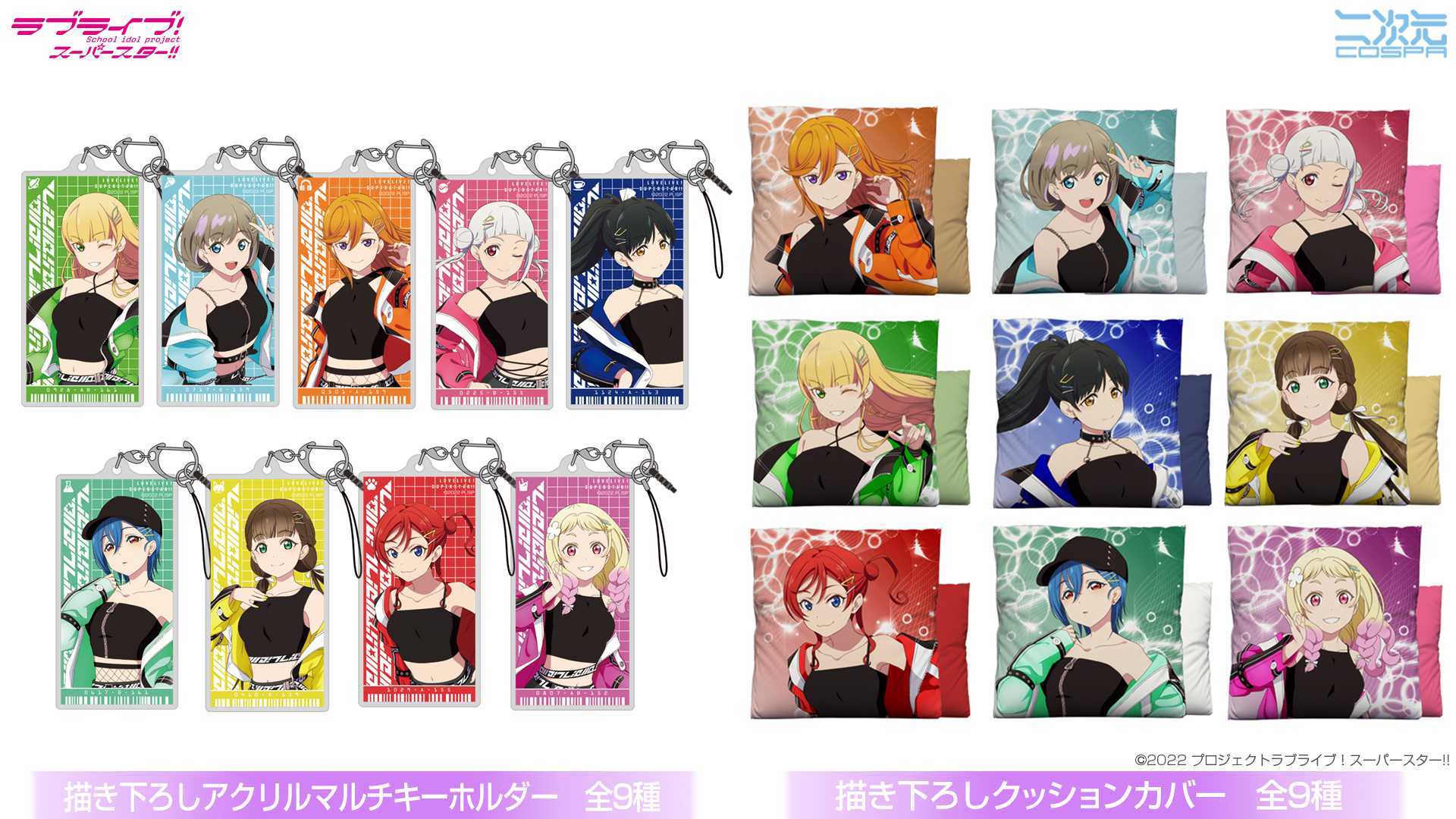 「アクリルマルチキーホルダー」「クッションカバー」は
