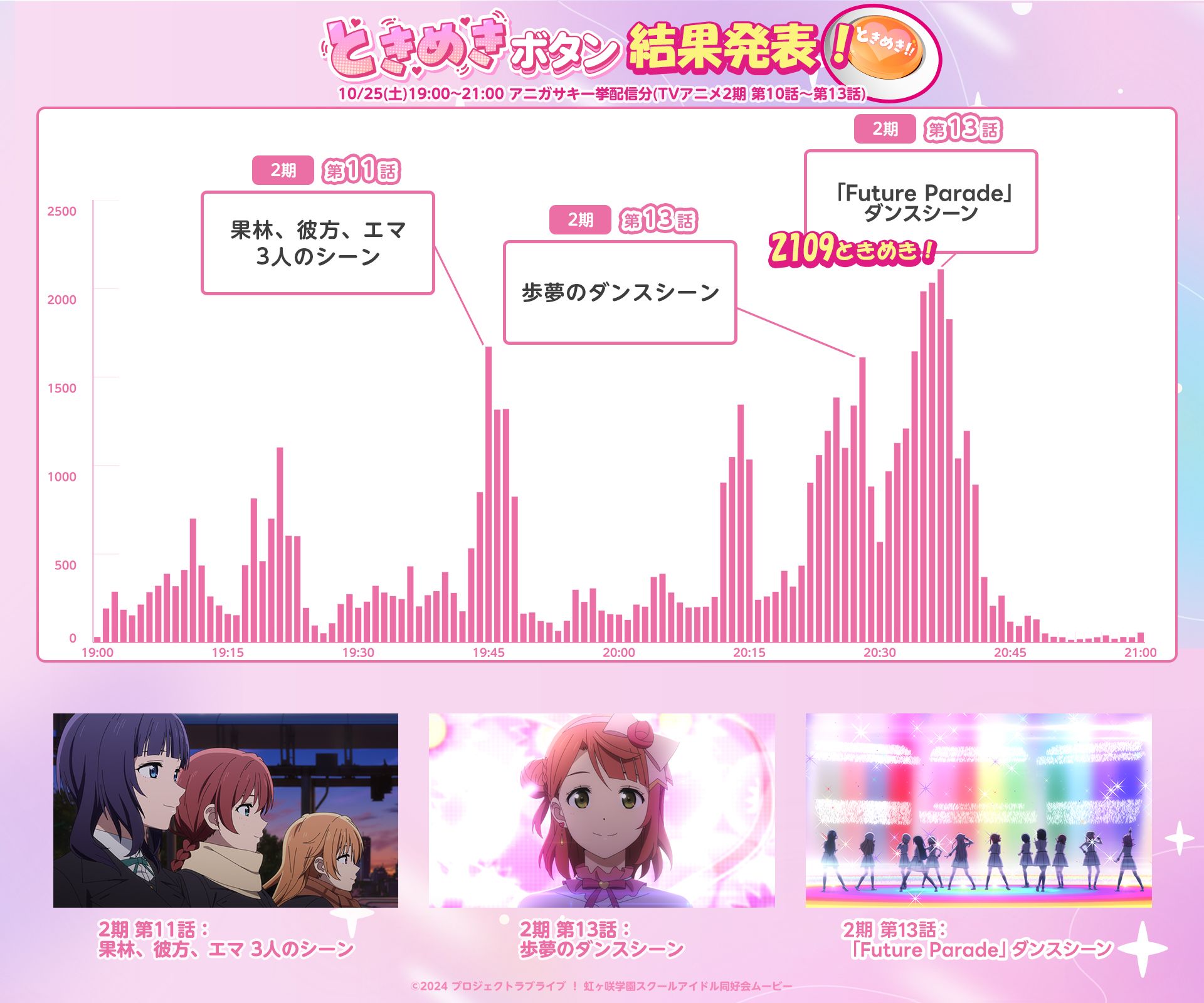 「ときめきボタン」結果発表!みんながときめいたベストシーンは? 10/25(土)~26(日) アニガサキ一挙配信/OVA『NEXT SKY』&映画『完結編 第1章』豪華2本立てニジガクスペシャル分
